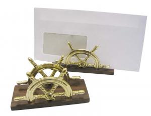 Brief- oder Servietten-Halter, Messing/Holz, 12,5x5x7cm