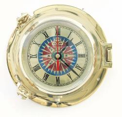 Bullaugen-Uhr mit Windrosenzifferblatt, Messing, Quartzwerk, Dm: