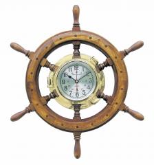 Bullaugenuhr im Steuerrad, Holz/Messing, Quartzwerk, Dm: 60cm, U