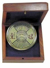 Dauerkalender, Messing, Dm: 5,5cm, in der Holzbox