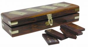 Domino-Spiel, Holz/Messing, 20,5x7x5cm