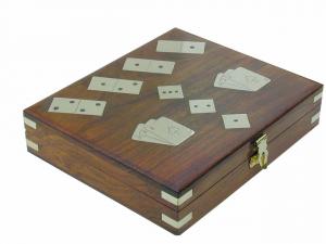 Domino/Wuerfel/Karten-Box, Holz, inklusive Kartenspiel, 20x17x5c