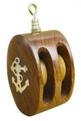 Doppel-Blockrolle, Holz/Messing, 9,5x4,5x4,2cm