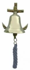 Glocke mit Anker-Wandhalterung, Messing, mit blauem Baendsel, Dm