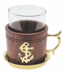 Grog-Glas, Holz mit Messing-Untersetzer, H: 10cm