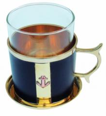 Grog-Glas, Messing/Leder, mit Untersetzer, H: 9cm