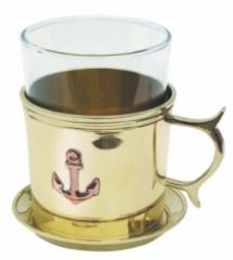 Grog-Glas mit Untersetzer, Messing, H: 9,5cm