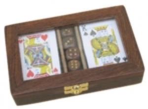 Karten-Wuerfel-Box mit Glassichtfenster im Deckel, Holz, 18x11,5