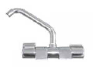 Warm- und Kaltwasser; Keramik-Mischer-Hahn aus Messing verchromt. Der Auslasshals ist dreh- und klappbar und somit auch einsetzbar bei Spuelen und Waschbecken, die mit einer Klappe abgedeckt werden koennen.