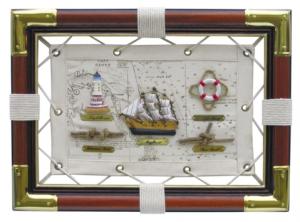 Knotentafel, Holz/Stoff/Messing, 36x26cm