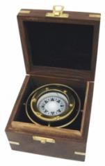 Kompass, Messing, Dm: 6,5cm, kardanisch aufgehaengt, in der Holz