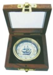 Kompass mit Schiffs-Windrose, Messing, Dm: 5,5cm, in Holzbox mit