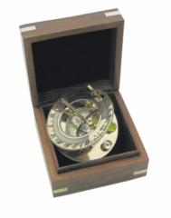 Kompass - Sonnenuhr, Messing, Dm: 8cm, in der Holzbox