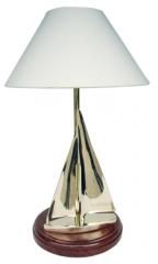 Lampe - Segelyacht, elektrisch 230V, Messing/Holz, H: 60cm, Dm: