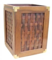 Papierkorb, Holz mit Messingecken, 23x23x31cm