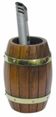 Penhalter im Fassdesign, Holz/Messing, H: 9,5cm, Dm: 6,5cm