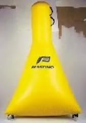 Die Regattaboje Jumbo, vorgesehen fuer grosse Boote, ist durch ihre Hoehe von 3,20 m auch auf sehr weiten Parcours optimal sichtbar. Die Boje besteht aus 1100 Decitex-PVC und ist daher sehr robust und widersteht auch eventuellen Kollisionen waehrend einer Regatta. Durch die drei verstaerkten Befestigungsvorrichtungen an der Unterseite kann die Boje stets entsprechend den jeweiligen Meeres- und Windbedingungen beladen werden.