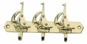Schluesselhaken mit 3 Segelbooten, Messing, 16x7cm