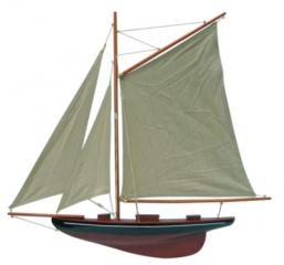 Segel-Yacht, Halbmodell, schwarz/weinrot, Holz mit Stoffsegel, L