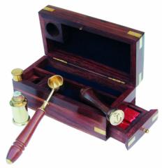 Siegel-Set, Messing/Holz, in der Holzbox, 14x6,5x6cm