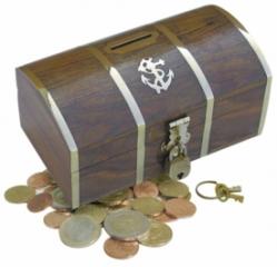 Spardose - Schatztruhe, mit Schloss & 2 Schluesseln, Holz/Messin