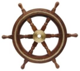 Steuerrad, Holz mit Messingnabe und eingelassenem Tau, Dm: 45cm