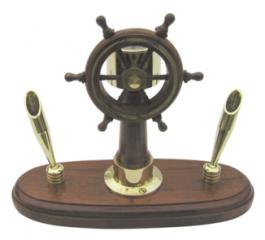 Steuerstand mit 2 Penhaltern, Holz/Messing, H: 16cm