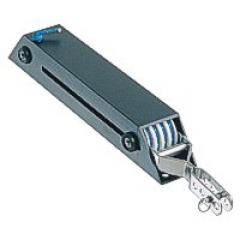 kompaktes Design mit geringem Gewicht, kugelgelagerte Rollen, Untersetzung 7:1 Tauwerk DYNEEMA, reckarm. Gehäuse Aluminium eloxiert mit verstellbarer Gabel