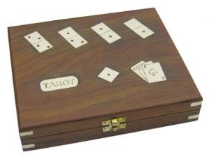 Tarot, Romme, Wuerfel & Domino in der Holzbox, inklusive Spielka