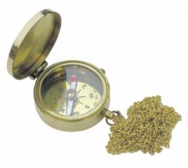 Taschenkompass mit Kette, Messing, Dm: 3,5cm