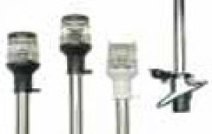 Aus rostfreiem Stahl AISI 316, mit Laterne "Utility Compact", 5 Watt-Spezialbirne und Spezialbasis aus rostfreiem Stahl und Steckverschluss. Beim Einschnappen des Mastes im Halter werden automatisch die elektrischen Kontakte verbunden. Bei fehlendem Mast wird die oeffnung durch eine Kappe verschlossen.
