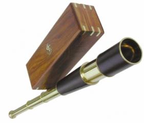 Teleskop mit Ledereinfassung, Messing, L: 80cm, in der Holzbox