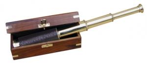 Teleskop mit Ledergriff, Messing, L: 40cm, in der Holzbox