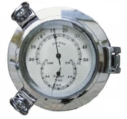 Thermo- & Hygrometer im Bullauge, verchromt, Dm: 14cm