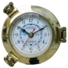 Tidenuhr im Bullauge, Messing, Quartzwerk, Dm: 14cm