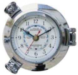 Tidenuhr im Bullauge, verchromt, Quartzwerk, Dm: 14cm