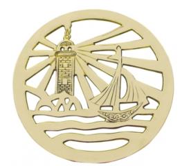 Topf-Untersetzer - Leuchtturm & Segler, Messing, Dm: 19,5cm