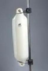 Wird mit einem Plastik-Clip auf Rohre von 18.5 bis 25.5 mm angebracht. Die Metallteile sind aus V4A Edelstahl. Ein einzigartiges System mit in der Hoehe verstellbaren Clips. Darauf sind Halterungen befestigt, die den Fender an jedem Ende halten. Wenn der Fender herausgenommen wird, klappt die Halterung automatisch zurueck. Das Deck ist frei und man hat mehr Bewegungsfreiheit. Fuer vertikale Montage (Reling, Relingsstuetzen) oder horizontal (Bugkorb). A : 180 mm