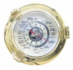 Weltzeituhr im Bullauge, Messing, Quartzwerk, Dm: 22cm