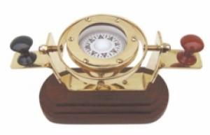 Yacht-Kompass, Messing mit Holzsockel, Dm: 8,5cm, 18x9cm