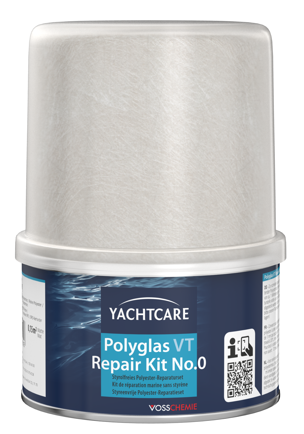 POLYGLAS REPAIR KIT VT enthält ein styrolfreis, schnellhärtendes und aminbeschleunigtes Polyesterharz, welches in Verbindung mit der Glasmatte speziell für schnelle Reparaturen an GFK-Teilen eingesetzt wird. Das Set enthält neben dem Polyesterharz die entsprechende Menge BPO-Härterpaste und Glasfasermatte. POLYGLAS Repair Kit VT eignet sich sehr gut für eine Not-Reparatur, da das Boot bereits nach ca.1 Stunde wieder vorsichtig in Betrieb genommen werden kann.