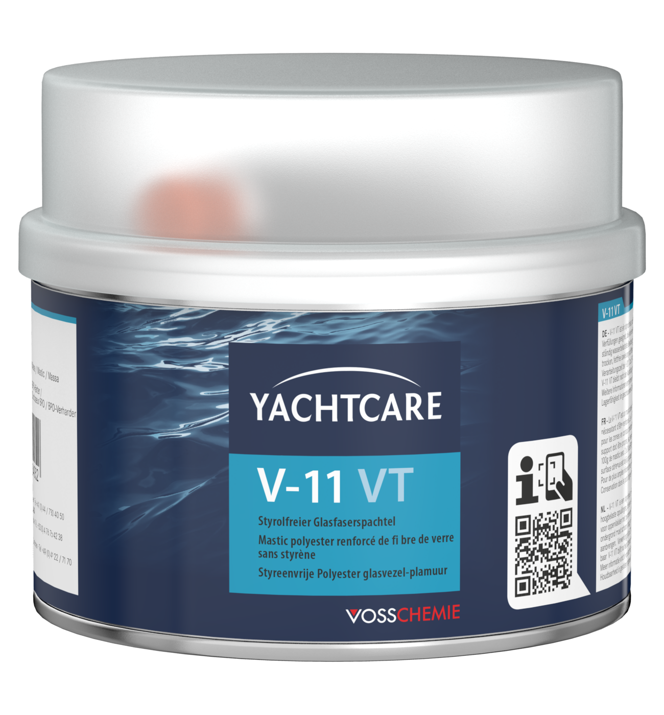 V-11 VT Faserspachtel ist eine styrolfreie, zweikomponentige thixotrope Spachtel- und Klebmasse aus hochreaktivem Reparaturharz mit eingemischten Glasfasern. Aufgrund der besonderen Glasfaser-Formulierung hat der Spachtel eine höhere Festigkeit als eine normale Standardmasse. Die Masse härtet schnell an und weist einen nur sehr geringen linearen Schrumpf auf.